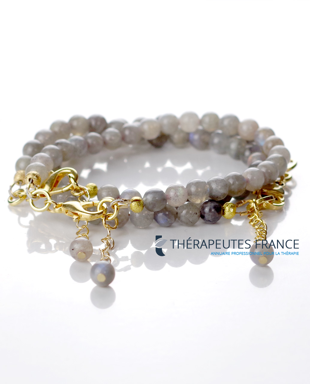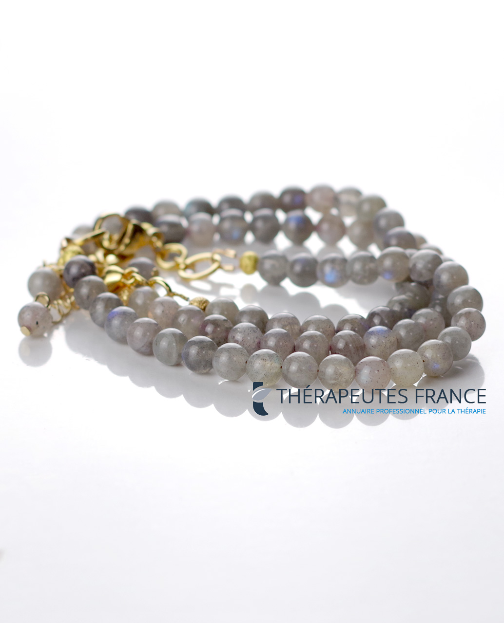 La Labradorite est connue pour ses vertus de protection en agissant comme un bouclier énergétique neutralisant les énergies négatives. Elle est la pierre de prédilection des thérapeutes, des personnes en relation d’aide. Porter un bracelet de labradorite lors d’une séance par imposition des mains aiguise les facultés du magnétiseur. Les étudiants, les artistes, les poètes, … peuvent profiter de ses vertus qui stimulent l’intellect et l’inspiration. La labradorite est aussi la pierre des célibataires, réputée pour développer l'intérêt et le désir des autres pour le porteur de la pierre.