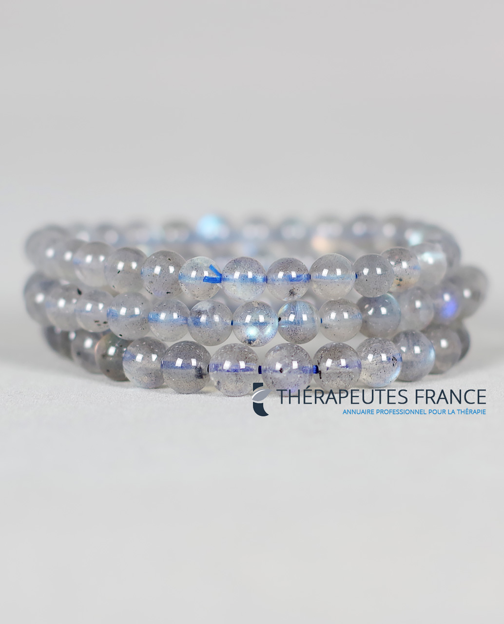 La Labradorite est connue pour ses vertus de protection en agissant comme un bouclier énergétique neutralisant les énergies négatives. Elle est la pierre de prédilection des thérapeutes, des personnes en relation d’aide. Porter un bracelet de labradorite lors d’une séance par imposition des mains aiguise les facultés du magnétiseur. Les étudiants, les artistes, les poètes, … peuvent profiter de ses vertus qui stimulent l’intellect et l’inspiration. La labradorite est aussi la pierre des célibataires, réputée pour développer l'intérêt et le désir des autres pour le porteur de la pierre.