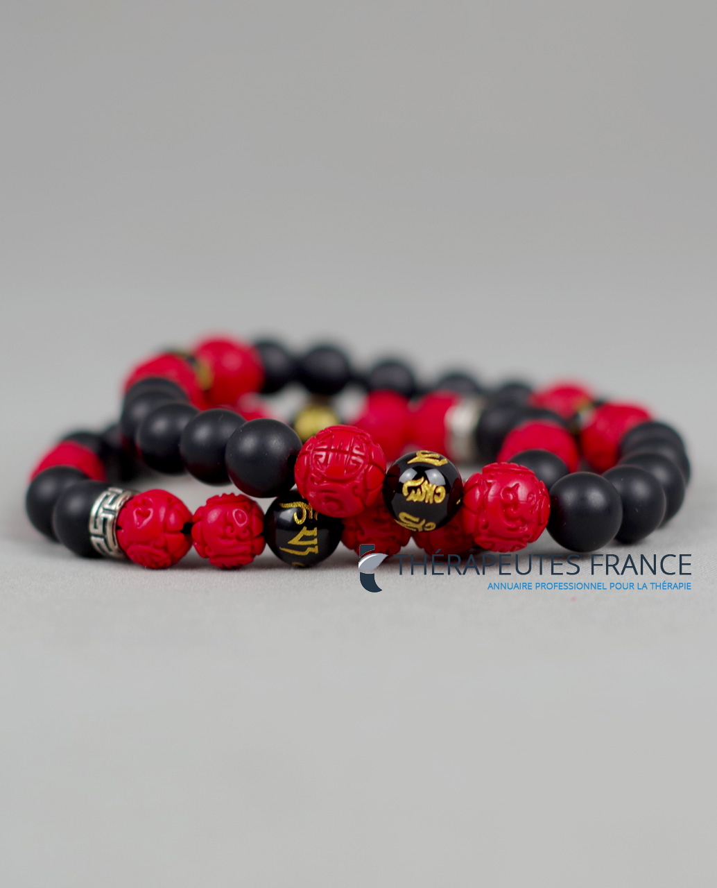 Les perles d'Agate Noire apportent une touche de mystère et de sophistication, tandis que le Cinabre, une pierre aux propriétés protectrices, se marie de manière subtile avec l'Obsidienne Noire, connue pour ses propriétés équilibrantes et sa beauté hypnotique. Les gravures fines sur la perle d'Obsidienne Noire ajoutent une dimension artistique et symbolique à ce bracelet unique. Porter ce bijou va au-delà de la simple parure : il vous enveloppe dans un cocon de protection, tout en s'inscrivant dans les tendances actuelles de la mode. Vous exprimerez votre style avec une élégance inégalée, tout en bénéficiant de l'énergie bienfaisante du Cinabre qui vous accompagnera au quotidien. La collection "Protection" représente bien plus qu'un simple accessoire, elle incarne un véritable chef-d'œuvre artisanal qui vous invite à vous reconnecter à la beauté et à la puissance de la nature.
