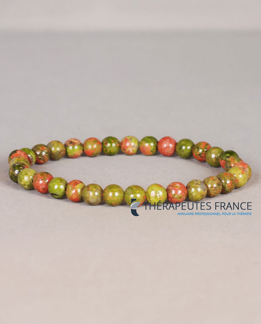 Laissez-vous séduire par la beauté naturelle et les bienfaits apaisants de notre bracelet en unakite. Composé de perles aux tons verts et roses, ce bijou élégant allie style et lithothérapie. L’unakite est réputée pour favoriser l’équilibre émotionnel, apaiser le stress, et stimuler la croissance personnelle. Portez cette pièce unique pour une touche de sérénité au quotidien, ou offrez-la à un être cher en quête d’harmonie intérieure. Embrassez la puissance calmante de l’unakite avec notre bracelet, conçu pour illuminer votre esprit et embellir votre poignet.