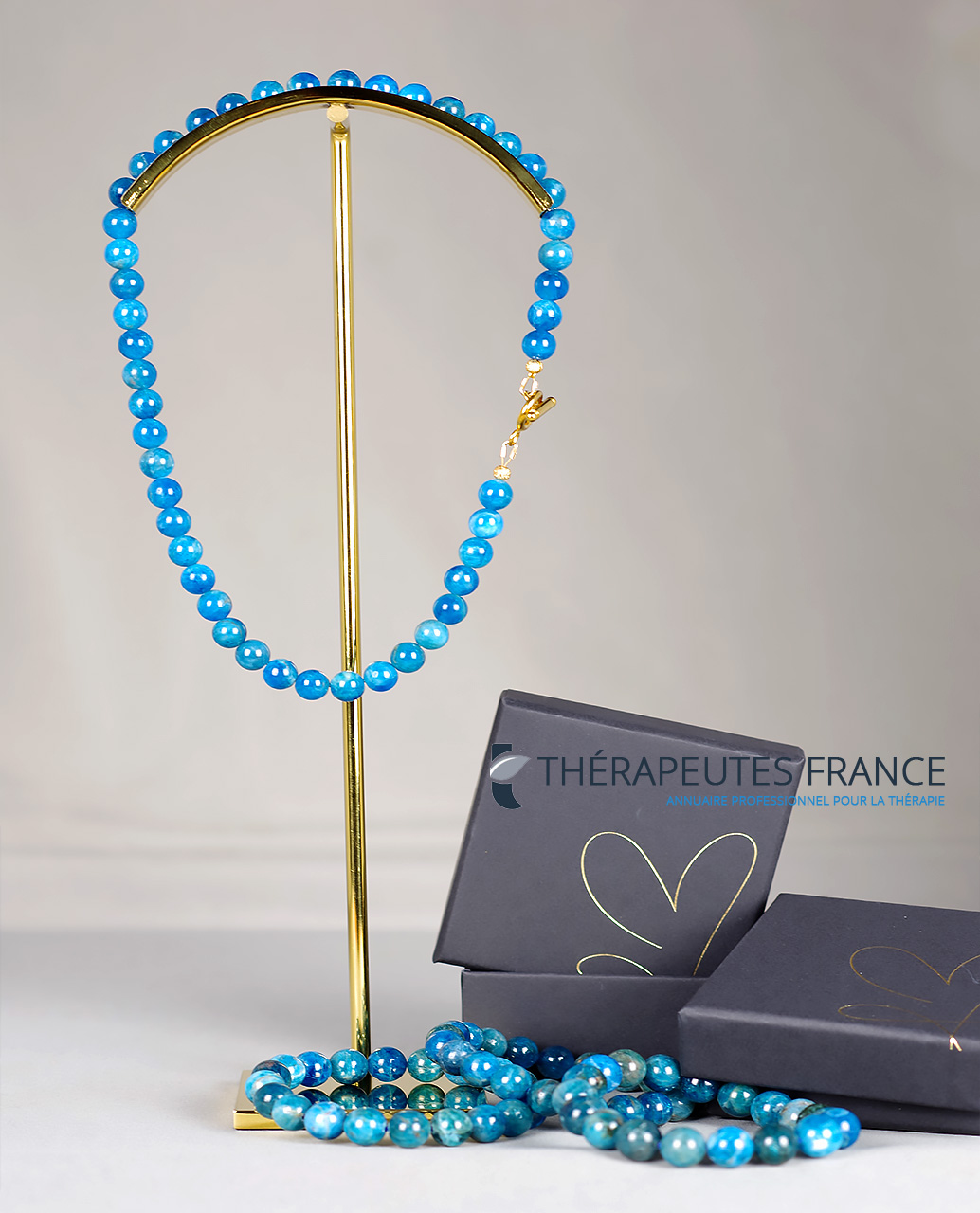Explorez l’élégance céleste de ce superbe collier en apatite bleue. Chaque pierre, d’un bleu envoûtant, est minutieusement choisie pour sa beauté naturelle et ses vertus apaisantes. Laissez-vous séduire par la magie de l’apatite bleue et brillez de son éclat divin à tout moment.