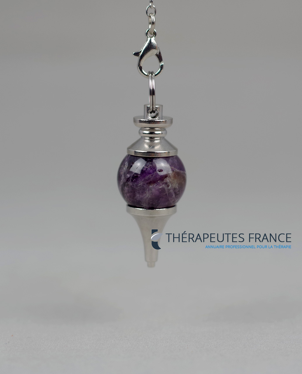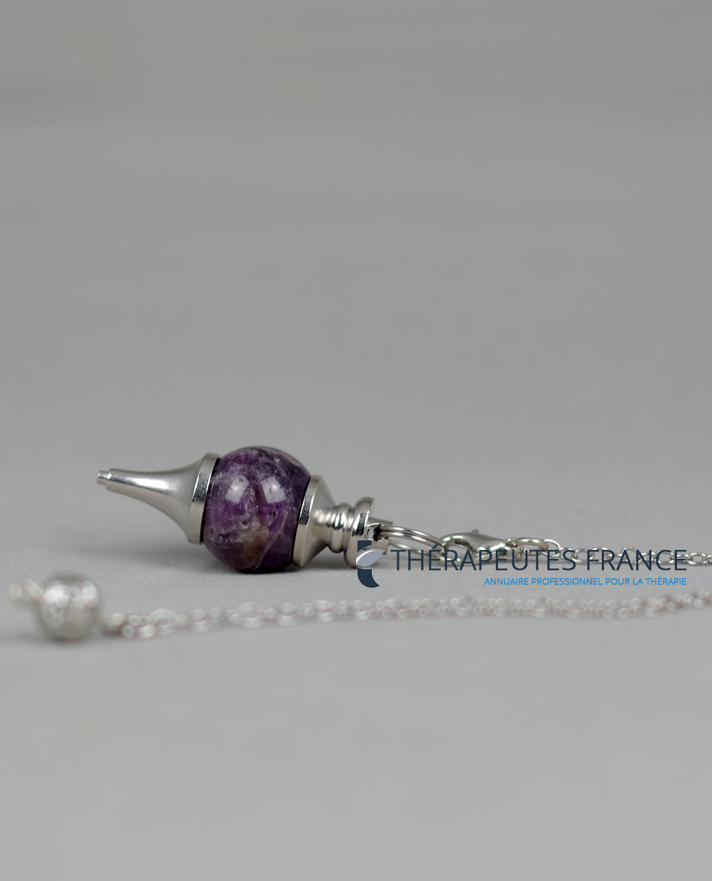 Pendule de radiesthésie en améthyste & métal argenté – Éclat Divin