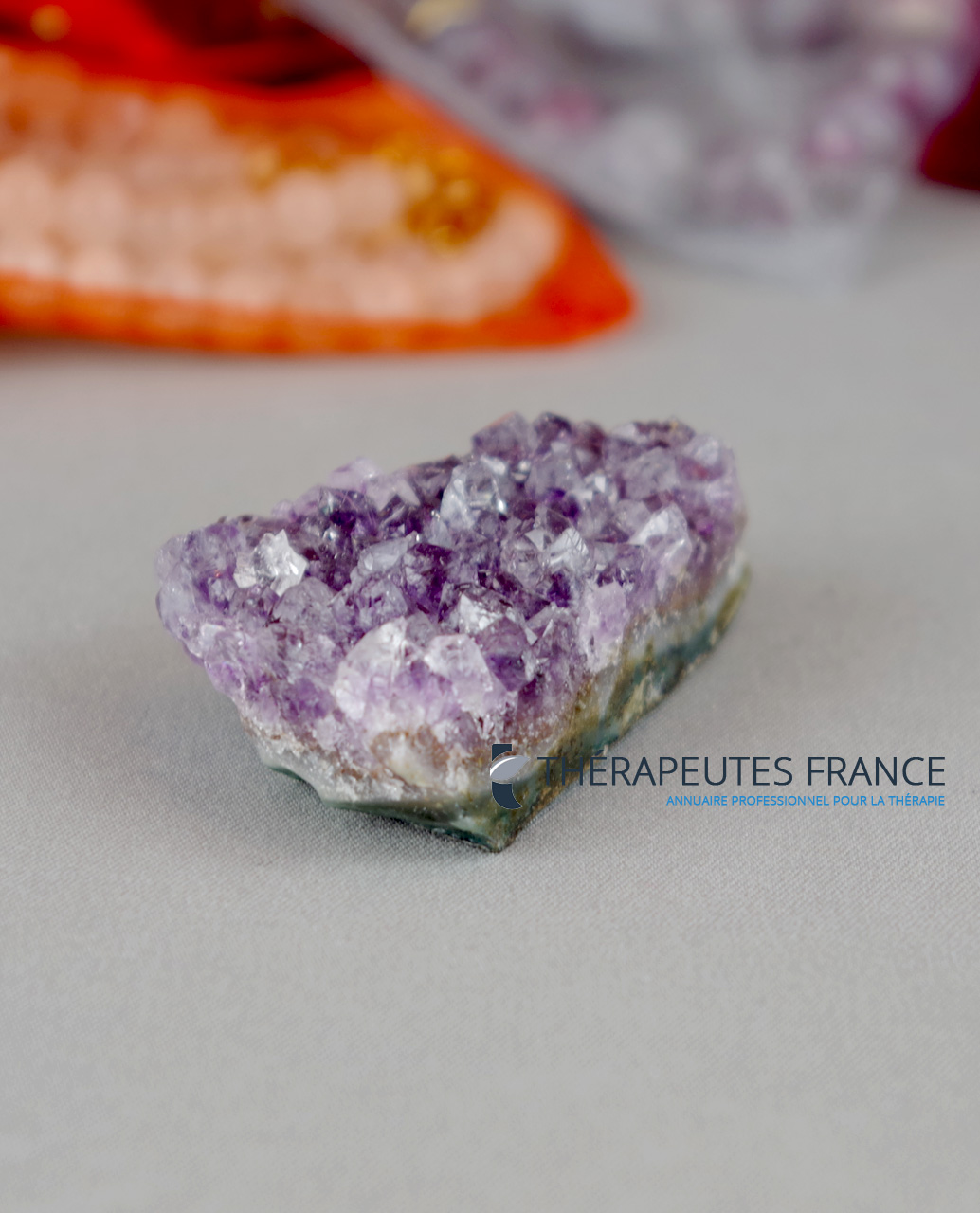 L'améthyste est souvent associée à la purification, à la spiritualité et à la protection psychique. On dit qu'elle aide à apaiser l'esprit, à favoriser la clarté mentale et à équilibrer les émotions.