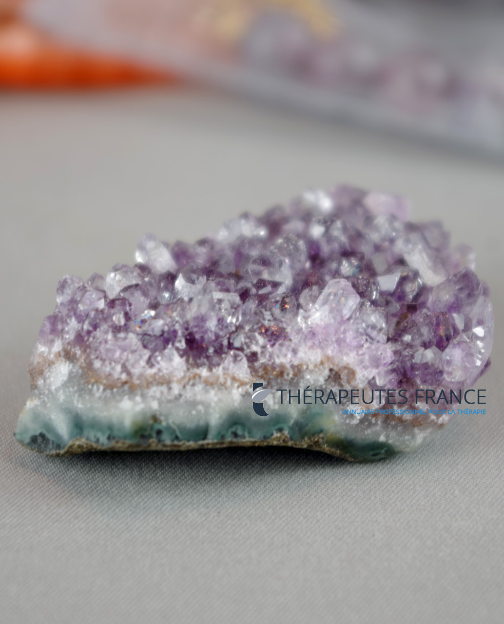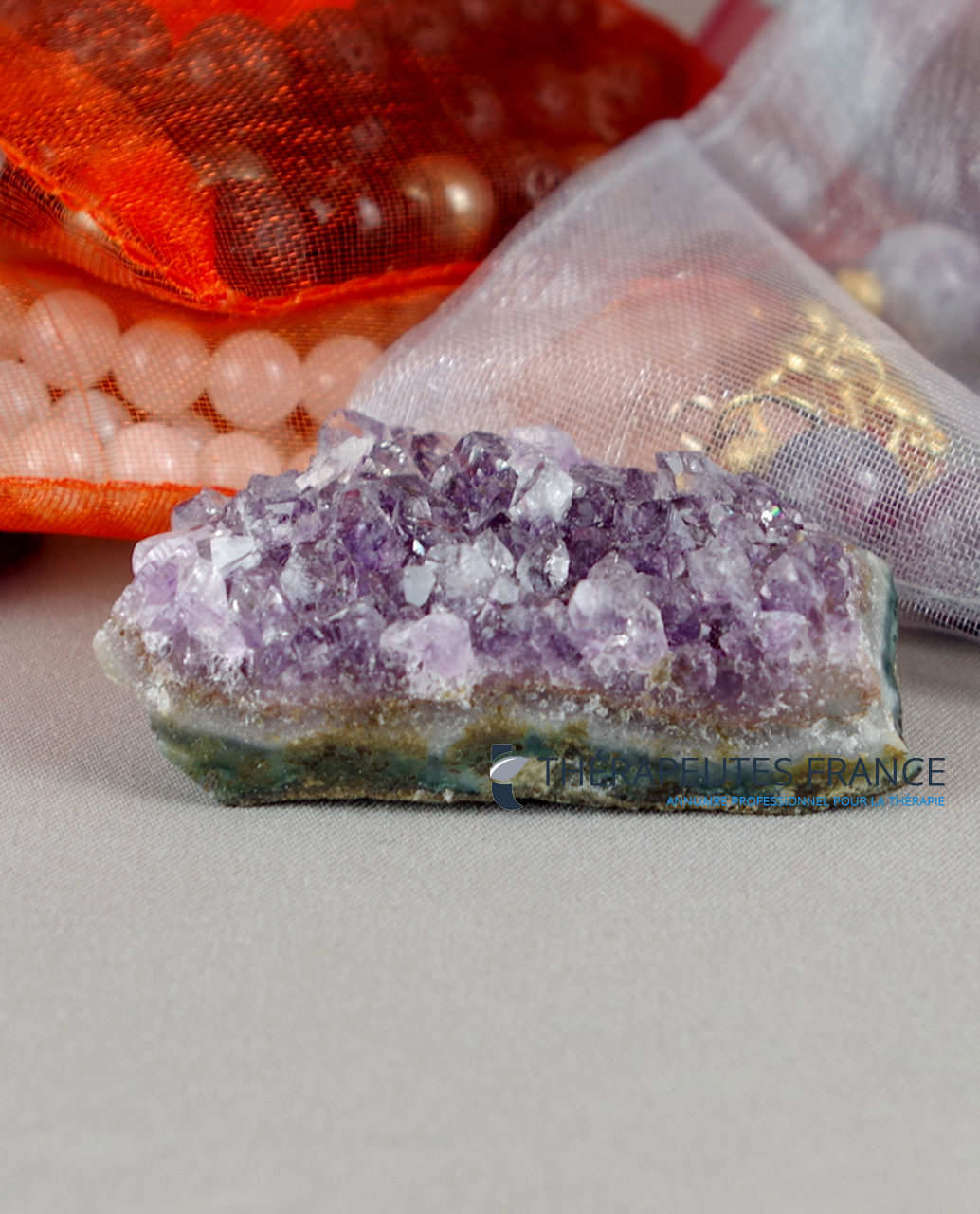 Cette mini druse naturelle d’Améthyste est idéale pour recharger vos petits bijoux. L’améthyste est une pierre purifiante et apaisante, anti stress naturel qui est efficace contre les peurs et les angoisses. Elle se montre utile pour les personnes souffrant d’insomnies ou sujettes aux cauchemars. On dit qu’elle est efficace dans le cadre de négociations et apporterait succès en affaires.
