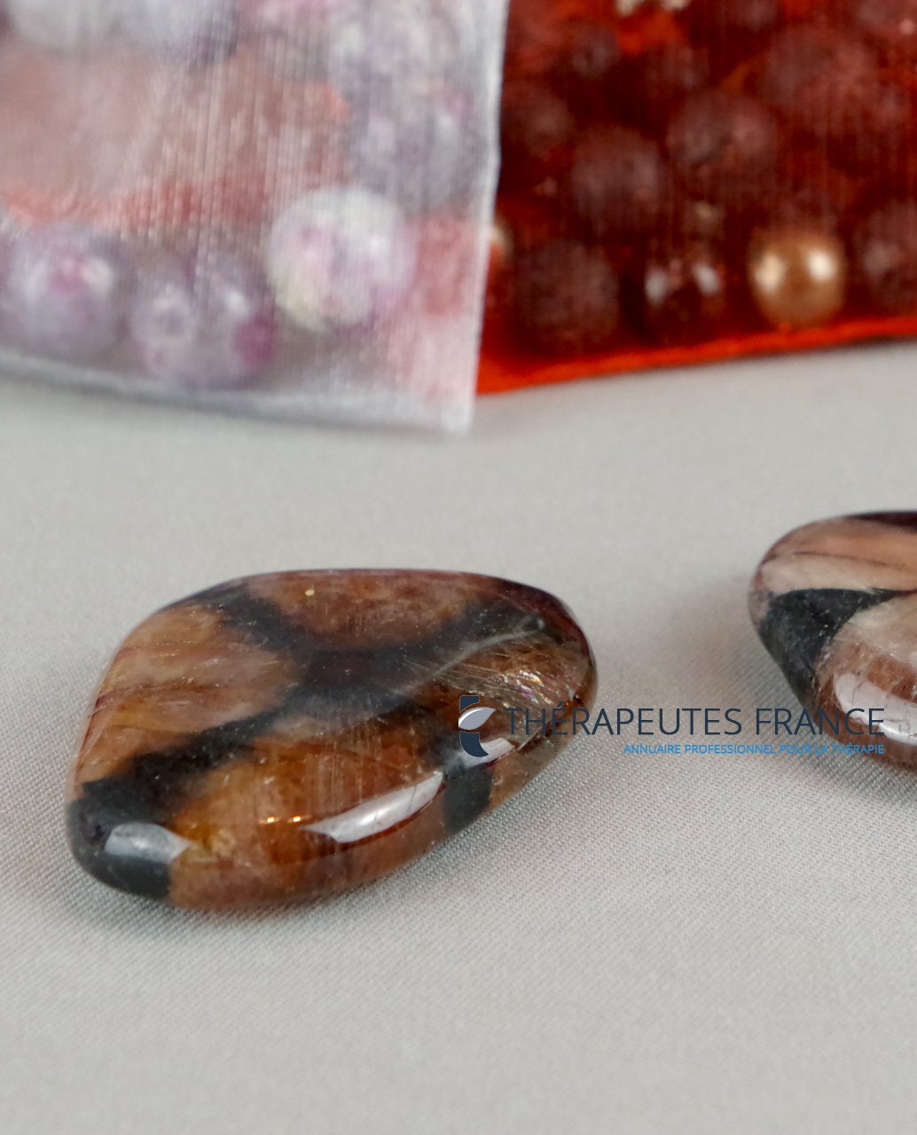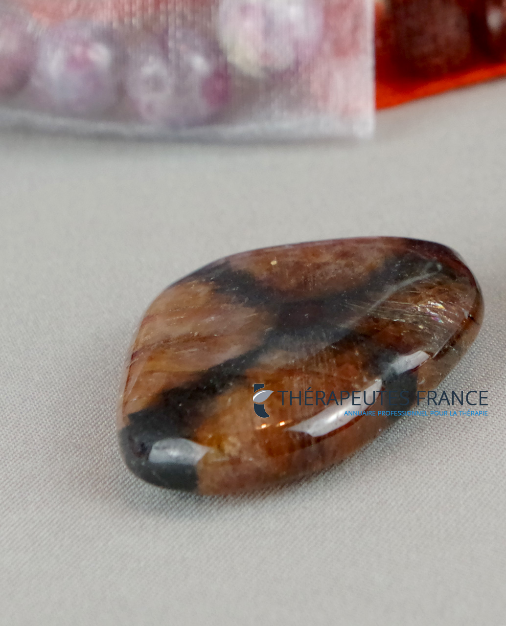 Magnifique et mystérieuse pierre aux motifs de croix, de couleurs virant au vert jaune, au brun rouge avec un fort pléochroïsme. C’est une pierre de centrage, d’alignement et de protection. En lithothérapie, on dit qu’elle est recommandée pour équilibrer et harmoniser le chakra racine qui est le centre de l’énergie vitale et de notre lien avec la terre. Autrefois, cette pierre était portée en amulette de protection, on disait qu’elle permettait de conjurer le mauvais œil.
